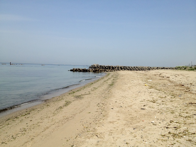 一度幹線道路まで出て海水浴場を目指してみるも、どこも潮干狩り会場として管理されていて、