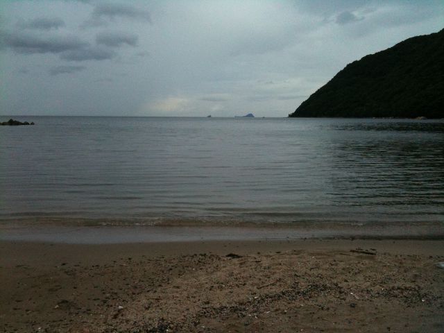 「どう?ここで行ってみる?」「ええんでない?」とのことで、駐車場目の前の浜に鎮座。