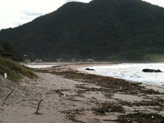 もう移動先候補が無いので無理矢理竿出ししてみるも、大量のゴミが上がってくる&仕掛けからみまくりで早々に諦め、朝には波がおさまってくれてることを期待し、ここで車中泊。
