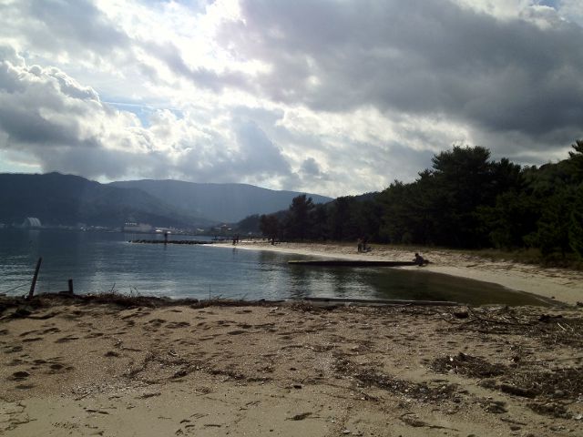 平浜に到着するともう皆さん小雨の中ながら準備を整えておられ、慌てて準備して浜に下りると間もなくスタートの合図。 少々出遅れ気味で、浜の両端はもう満員状態だったので、中程の空いている場所に入る。