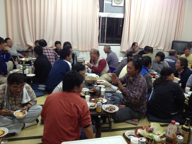 奥様方主導であれよあれよと準備は進み、予定通り6時頃に2階の宴会場へ食材を運び込み、「これがメインだ」と皆様口をそろえて仰られる大宴会の火蓋が切って落とされました。