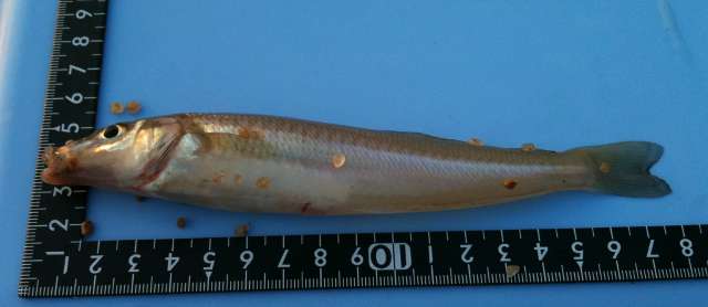 12時を回って「針にエサが残ってたんで投げてみたら食ってきた」などと最後に2匹ほどダメ押しし、15cmほどを主体に18cmほどのも5~6匹、都合50匹ほどで引き上げる。