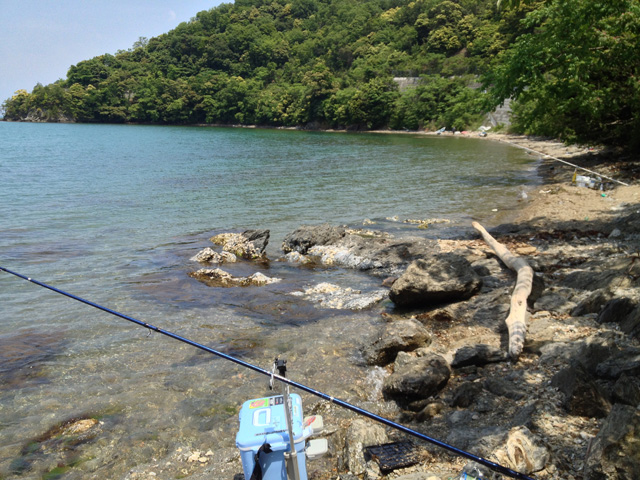 足場が少々狭く変な投げ方になってしまったようで、力糸の半分くらいで竿先に絡み、仕掛けロスト(泣)