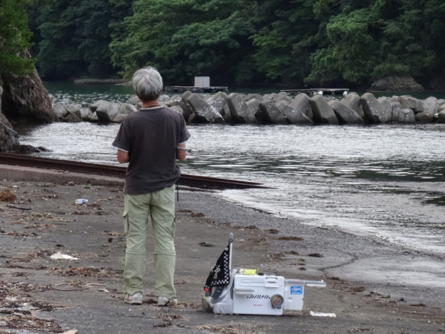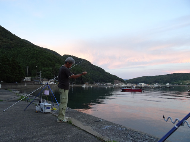 去年も投げ吉さんと夜釣りに来ました、音海の学校裏。
